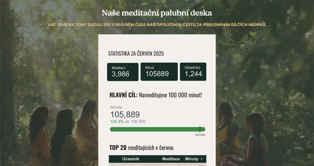 Každý účastník obdržel odkaz na stránku, kde si mohl měřit a logovat své meditace a sledovat své celkové statistiky nameditovaného času.
